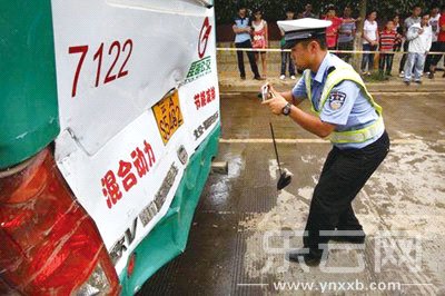 云南昆明兩公交車追尾 司機急剎甩傷57人(圖)