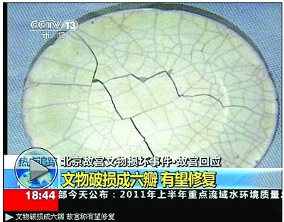 故宮(微博)被弄碎的官窯盤。