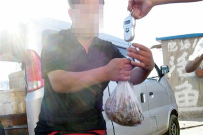 記者又趕到了小港碼頭處的自發(fā)市場,該處有大批漁船靠岸,許多市民前來購買新鮮的海貨。一些業(yè)戶擺著一盆盆螃蟹、蝦、蝦虎、海螺、小海魚等等待買家。記者走到一處攤點前,“這些都是海捕蝦,每斤15元。”業(yè)戶向記者介紹說。記者要了兩斤蝦,業(yè)戶麻利地在電子秤上稱出了1000克。記者使用電子彈簧秤當場稱重,結果只有960克,少了40克,近一兩重。業(yè)戶一看到這個結果,從竹筐里掏了幾個蝦放進塑料袋,蝦的重量這才到了1000克。(記者 陳勇)