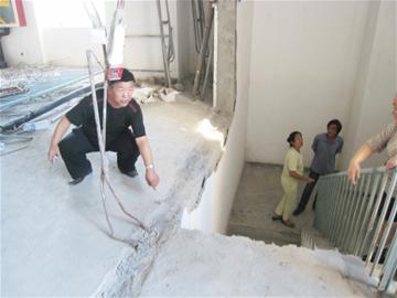 早報訊 開店鋪,裝修一番本無可厚非,可這戶人家裝修的可不簡單,短短十幾天的時間,采用“游擊戰(zhàn)”方式,竟然將三層樓的承重墻外加部分樓梯通通砸掉,這可嚇壞了小區(qū)居民?!鞍臣易≡?0樓,這砸墻的聲音就一直沒停過,叫人是心驚肉跳啊?!弊蛱焐衔?,家住云南路小區(qū)的居民呂女士來電反映。