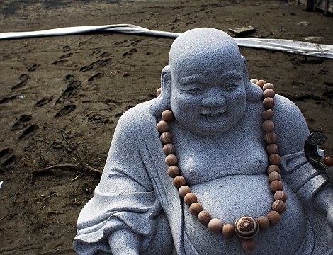 微笑的彌勒佛像背后,是人們匆忙逃離時(shí)留下的凌亂腳步。