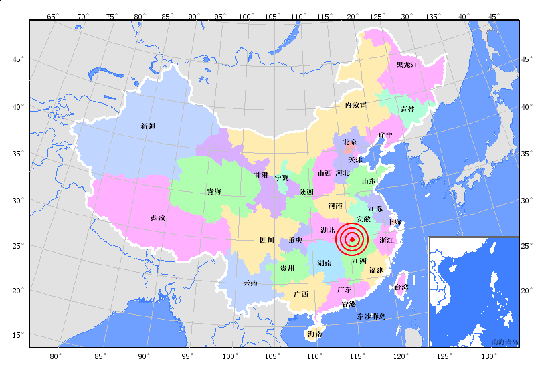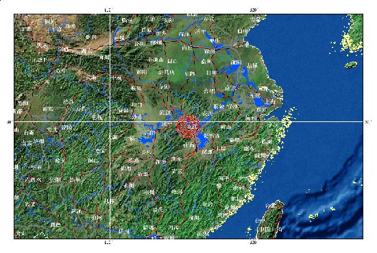 中新網(wǎng)9月10日電 據(jù)中國地震臺網(wǎng)測定,北京時間2011年9月10日23時20分在江西省九江市瑞昌市、湖北省黃石市陽新縣交界地區(qū)(北緯29.7,東經(jīng)115.4)發(fā)生4.6級地震, 震源深度17公里。武漢、南昌等地均有震感。