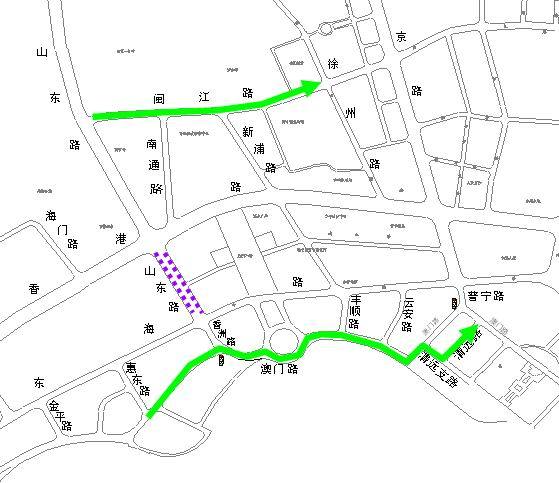 另外,閩江路(山東路至徐州路路段)設(shè)置為西向東單行;前往府新大廈方向的車輛從香港路右轉(zhuǎn)進(jìn)入南通路,再右轉(zhuǎn)進(jìn)入閩江路向東行駛。澳門路(惠東路至清遠(yuǎn)支路路段)設(shè)置為西向東單行(2 排車道)。