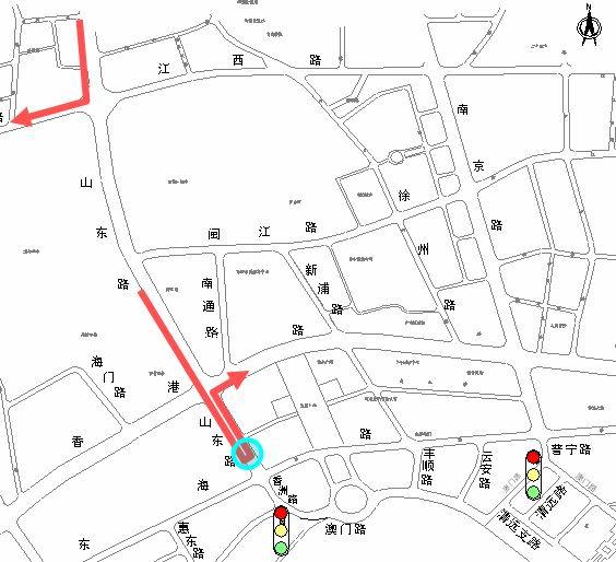 山東路中央隔離帶增設(shè)調(diào)頭車道開(kāi)口(東海路山東路口以北約100米處隔離帶增設(shè)寬度8米的調(diào)頭車道,已施工完畢),香港中路山東路口北向東左轉(zhuǎn)車輛在南側(cè)調(diào)頭車道開(kāi)口調(diào)頭后右轉(zhuǎn)向東行駛。 香港中路山東路口北向西右轉(zhuǎn)車輛在提前山東路江西路口右轉(zhuǎn)。