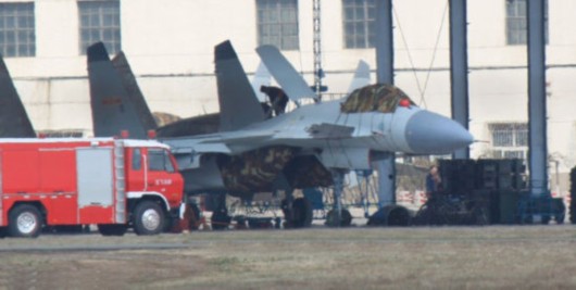 資料圖:日前在中國網(wǎng)絡(luò)上出現(xiàn)的殲-15(J-15)艦載戰(zhàn)斗機機的照片再次引發(fā)熱議。