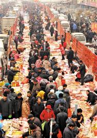 昨日是農(nóng)歷臘月初七,李村大集迎來2011年的最后一個開集日,盡管天氣寒冷,市民仍從四面八方過來置辦年貨,福帖、對聯(lián)、燈籠、香燭……河底的李村大集年味十足。據(jù)介紹,每年進入臘月之后李村集就開始進入忙年時間,臘月十二將進入李村集忙年高峰,趕集人數(shù)將達到10多萬人,昨日到李村趕集的市民超過4萬人。