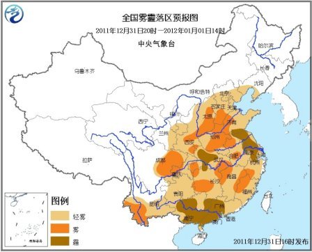 圖據(jù)中央氣象臺網(wǎng)站 中新網(wǎng)12月31日電 2011年最后一天,霧霾成為我國天氣舞臺上的“主旋律”。據(jù)中央氣象臺監(jiān)測,今天白天,我國東北地區(qū)南部、華北大部、黃淮、江淮、江漢、江南、華南以及西南地區(qū)東部皆被霧霾所籠罩。 明天是元旦假期的第一天,中東部地區(qū)的霧霾天氣仍有愈演愈烈之勢,今日18時,中央氣象臺將大霧預警升級為黃色,預計,今天夜間到明天上午,山西中南部、河北南部、河南中東部、山東西部、安徽北部、陜西關(guān)中平原、四川盆地、湖北東部、湖南西部、江西東部和西北部、浙江西南部、福建西部及云南西南部等地有能見度不足1000米的霧,部分地區(qū)不足200米。另外,江蘇、湖北中西部、廣西、廣東中西部等地有霾。預計此次霧霾天氣會一直持續(xù)至元月3日,在元旦假期期間有出行或游玩計劃的朋友請注意出行交通安全。同時,霧霾天氣會降低空氣質(zhì)量,朋友們外出時可以采取佩戴口罩等措施,防止霧霾對身體健康造成傷害。 溫度方面,受一股中等強度的冷空氣的影響,預計今天夜間至2012年1月4日,我國大部地區(qū)將自西向東先后出現(xiàn)4~6℃降溫,局地降溫幅度可達8~10℃,并伴有4~5級偏北風。 |