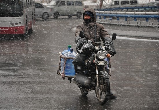 首發(fā):龍年首雪漫舞覆島城 迎來(lái)大風(fēng)降溫(圖)
