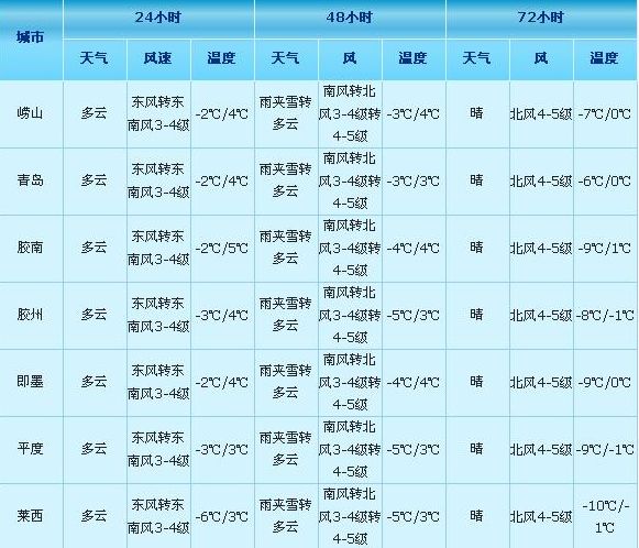 青島市氣象局1月30日06時(shí)發(fā)布未來(lái)3天的天氣預(yù)報(bào)