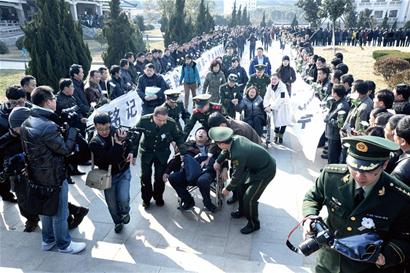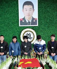 ????核心提示 ????從青島酒店管理學(xué)院走出的23歲小伙孫茂琿在蘇州參與滅火搜救中犧牲,除了他的親人、戰(zhàn)友、曾經(jīng)的同學(xué),還有無數(shù)不相識的人在為失去這位英雄而感到痛心和惋惜。昨天,孫茂琿的追悼會在蘇州殯儀館舉行,8000多名民眾趕到現(xiàn)場送別年輕的英雄,而遠(yuǎn)在孫茂琿萊陽的老家,曾經(jīng)兒時的伙伴們也點(diǎn)燃了蠟燭,為好伙伴點(diǎn)亮了回家的路,眾多網(wǎng)友也通過網(wǎng)絡(luò)寄托自己的哀思。 ????現(xiàn)場 ????天堂之行一路走好 ????昨?yàn)榫然鹩⑿蹖O茂琿送行的隊伍綿延幾公里 ???“讓我們?yōu)槟闫矶\,在去天堂的路上一路走好?!弊蛱焐衔?0時,在撲救火災(zāi)中英勇犧牲的武警蘇州消防支隊?wèi)?zhàn)士孫茂琿同志遺體告別儀式在蘇州殯儀館舉行。社會各界8000多名民眾手持白菊淚眼哽咽送英雄最后一程,告別的隊伍綿延幾公里。 ????告別大廳內(nèi),哀樂低旋,英勇犧牲的消防戰(zhàn)士孫茂琿安詳?shù)靥稍谙闼俸蠀仓?,遺體上覆蓋著一面鮮紅的黨旗。在他的身旁,擺放著蘇州市委市政府、公安部消防局政治部、江蘇省公安廳政治部、江蘇省公安消防總隊、故鄉(xiāng)山東省萊陽市政府、民政局,以及社會各界企事業(yè)單位團(tuán)體、個人和生前親朋好友敬獻(xiàn)的100多只花圈、花籃,莊嚴(yán)而肅穆。 ????告別儀式開始前,孫茂琿的母親楊乃生坐著輪椅,在親屬、消防官兵、醫(yī)護(hù)人員的陪護(hù)下來到告別大廳,當(dāng)看到兒子的遺體時,她竭盡全力撲過去,“我要再看看他!”楊乃生的這個舉動讓每一名在場群眾動容落淚。1分鐘后,孫茂琿的父親孫瑞坐在輪椅上、吸著氧氣、掛著吊水,來到了告別的大廳,看到兒子的遺體,父親泣不成聲。上午10時,孫茂琿遺體告別儀式開始。淚水中,蘇州消防支隊領(lǐng)導(dǎo)、戰(zhàn)友追憶著英雄孫茂琿的生平事跡、戰(zhàn)友兄弟情義。送別人群向?qū)O茂琿同志三鞠躬,致以最崇高敬意。8000多名送別英雄的民眾排成一條悲痛的長河,在英雄的身邊緩緩流過。這里有他生前的戰(zhàn)友、朋友、同學(xué),有犧牲的戰(zhàn)場所在地達(dá)運(yùn)精密有限公司的員工,有素不相識的企事業(yè)單位員工、上至八旬老人,下至6歲孩童,他們早已從報紙上熟悉了孫茂琿的名字,這次他們一定要看一眼這個可愛的大男孩,送別心中的英雄。 ????上午11時,孫茂琿同志的父親孫瑞最后一次面對著兒子,說出了一個父親的心聲:兒子,好兒子,你把生命留在了蘇州,蘇州人民不會忘記你,你戰(zhàn)友不會忘記你,家鄉(xiāng)父老不會忘記你,他們會把你的精神發(fā)揚(yáng)光大。安心走吧,兒子?。ā豆锰K晚報》記者 王森霈) ????延伸 ????點(diǎn)亮蠟燭送他回家 ????孫茂琿的20多名同學(xué)昨晚到他家門前送行 ????昨天,在百度“萊陽吧”內(nèi),一個“萊陽人民的好兒子孫茂琿在蘇州參加滅火救援行動中犧牲!??!”置頂帖子截至昨天下午5時,點(diǎn)擊量已經(jīng)超過了1.3萬次,孫茂琿曾經(jīng)的同學(xué)、朋友、戰(zhàn)友和與他素不相識的人都在通過網(wǎng)絡(luò)表達(dá)著對這位英雄的哀悼。其中一位署名 “悼念兄弟茂琿”的網(wǎng)友留言,回憶了他和孫茂琿上學(xué)時的美好時光。 ????記者根據(jù)帖子里的留言電話輾轉(zhuǎn)找到了 “悼念兄弟茂琿”,他叫張凱,曾經(jīng)和孫茂琿同窗三年,也是孫茂琿最好的朋友之一。“那時我們都在萊陽實(shí)驗(yàn)一中上學(xué),因?yàn)槠庀嗤?,我們倆和另外一個同學(xué)還學(xué)著大人的樣子拜了把子?!痹陔娫捓?,張凱聲音有些哽咽,他說當(dāng)初結(jié)拜的“三兄弟”,一個在國外,一個已經(jīng)離開了這個世界,自從前天晚上得知孫茂琿“走”了的消息,他一整宿都沒睡著。張凱說,孫茂琿上學(xué)時也有淘氣的時候,“兄弟三人”曾偷偷去過網(wǎng)吧,也曾一醉方休,甚至還曾為朋友出頭解決糾紛,凡是大家有事孫茂琿總是第一個站出來?!八某煽円恢焙懿诲e。”張凱記得,孫茂琿無論怎么玩,功課從來不會落下,這也是大家非常佩服的地方。 ????“我們今晚會去他家門口悼念?!睆垊P說,他和許多同學(xué)建了一個特殊的QQ群“紀(jì)念萊陽孫茂琿”,很快就有20多個同學(xué)加入,大家商量著昨天晚上一起到孫茂琿家門口,點(diǎn)上蠟燭,給自己的好兄弟好同學(xué)照亮回家的路。???? ????正在申請烈士稱號 ????昨天,在孫茂琿的遺體告別儀式上,江蘇省消防總隊黨委書記、政委陳益新,蘇州市人民政府副市長、市公安局局長張躍進(jìn)等領(lǐng)導(dǎo)深切哀悼,并慰問了孫茂琿的家屬。據(jù)悉,孫茂琿犧牲后,公安部消防局政委謝模乾批示:“對在火災(zāi)中犧牲的孫茂琿同志深表哀悼,對其親屬表示深切慰問。”江蘇省省政府黨組成員、省公安廳廳長孫文德批示:“每名傷員都要盡力搶救,犧牲同志要整理事跡,妥處善后。” ????記者昨天再次電話聯(lián)系到孫茂琿的表姐楊雪,她告訴記者,孫茂琿是家中的獨(dú)子,家里經(jīng)濟(jì)狀況較差,孫茂琿犧牲后,孫茂琿生前所在的部隊?wèi)?zhàn)士、社會許多企事業(yè)單位以及個人紛紛給兩位老人捐款,希望為老人日后的生活提供一些幫助。同時,有關(guān)方面也已向公安部報請為孫茂琿申請“烈士”稱號,而孫茂琿的遺體在昨天火化后,將可能被安置在蘇州市烈士陵園。 兒子走了挖走