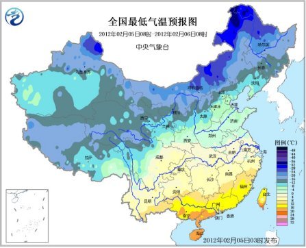 全國(guó)最低氣溫預(yù)報(bào)圖。