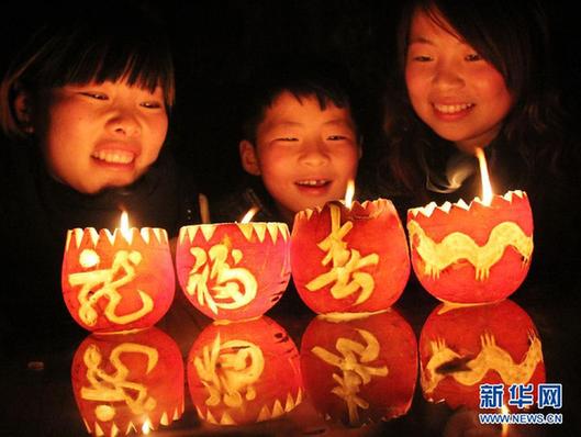 當(dāng)日是農(nóng)歷正月十三,是民間開始上燈的日子,魯南地區(qū)部分農(nóng)村有在這一天開始做蘿卜燈、點蘿卜燈的習(xí)俗。人們把洗凈、截好的蘿卜挖出內(nèi)瓤,形成燈碗狀,在外壁刻上“春”“?!被蛏D案,再將點燃的蠟燭放在蘿卜里,就成了蘿卜燈。當(dāng)?shù)厝罕娫谠?jié)點蘿卜燈,期盼風(fēng)調(diào)雨順、五谷豐登。新華社發(fā)(張春雷攝)