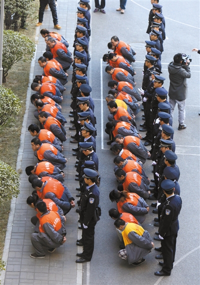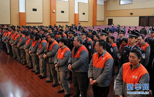 昨日上午,34名被告人集合后被帶進法庭。本報記者王貴彬攝