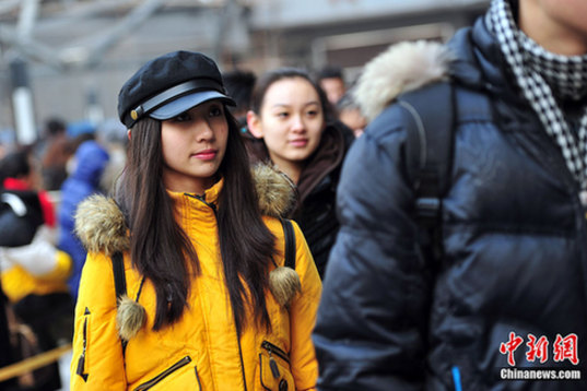 2月12日上午,2012北京電影學(xué)院藝考文學(xué)系、導(dǎo)演系、攝影學(xué)院開(kāi)始初試,表演學(xué)院則開(kāi)始了為期13天初試、復(fù)試和三試的藝考“長(zhǎng)跑”。截止到11日下午6點(diǎn),全院報(bào)名總數(shù)達(dá)18044人次。報(bào)名人次相對(duì)于去年減少1千人次。圖為考生排隊(duì)等待入考場(chǎng)初試。