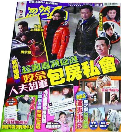 ????《忽然一周》周刊最新一期的爆料稱在杭州獨(dú)家拍到佘詩(shī)曼趁鄭嘉穎返港,與胡軍包房私會(huì),雜志的封面是偷拍到的佘詩(shī)曼與胡軍兩人路上邊走邊說(shuō)笑的照片,另一張則是佘詩(shī)曼上車,胡軍很紳士地開(kāi)車門并輕扶佘詩(shī)曼。周刊稱佘詩(shī)曼含春上胡軍車,而胡軍攬佘詩(shī)曼的腰。佘詩(shī)曼看到此八卦后十分憤怒,昨天18點(diǎn)57分在其微博中怒斥周刊不實(shí)報(bào)道,“八卦雜志又有不實(shí)報(bào)道!真?zhèn)S無(wú)佢咁好氣(真是很生氣)”。