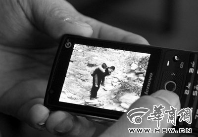 參與救人的謝同心展示手機(jī)上拍攝的交警背人照片