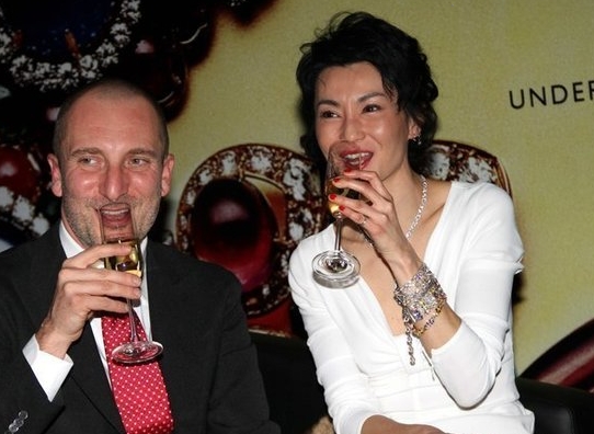 張曼玉低胸裝舉杯豪飲 與老外貼耳熱聊玩自拍