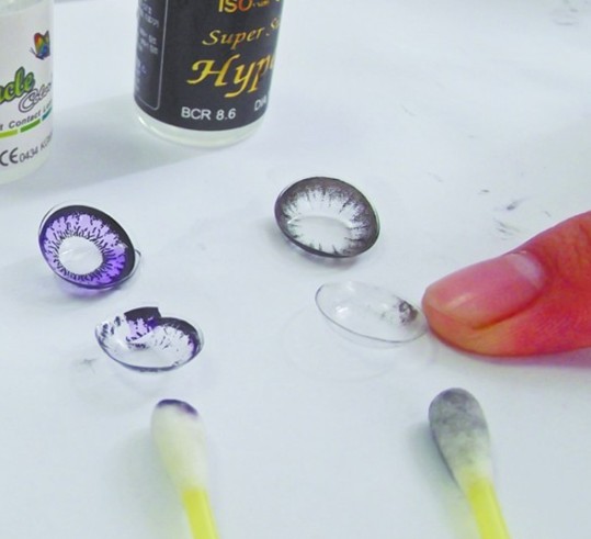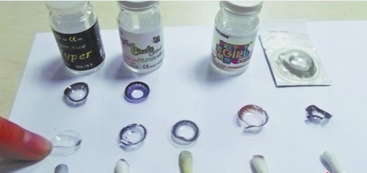 ![]() 被擦破了依然沒掉色;GEO(左二)掉色比護理 片則幾乎被擦拭成透明的。 浸泡十分鐘后用棉花棒擦拭大美目鏡片后,發(fā)現(xiàn)顏色能輕易被擦拭掉。 酒精浸泡對比:大美目(左一)被擦成透明;GEO(左二)被擦掉一半;昕視(左三)稍稍出現(xiàn)掉色;嘉麗秀(右二)只是掉了一點顏色;強生(右一)擦破也沒掉色。 記者借助酒精搞實驗 讓劣質美瞳現(xiàn)原形 為了驗證市面上各種美瞳的質量,記者買來五種美瞳做實驗,一種是在臺東夜市購買的售價40元的黑色大美目隱形眼鏡,第二種是在臺東小店購買的GEO 蜜糖紫色隱形眼鏡,價格60元,第三種是在臺東某眼鏡超市購買的年拋黑色彩片,價格78元,第四種是在大光明眼鏡店購買的半年拋棕色嘉麗秀美瞳,價格 80元,最后一種是在正規(guī)眼鏡店購買的強生日拋美瞳,五片價格49元。 首先,記者將買來的五種品牌的美瞳分別放到倒?jié)M護理液的隱形眼鏡盒中,浸泡10分鐘。 10分鐘后,記者用干凈的棉棒反復擦拭“大美目”黑色圖案的鏡片內部,原本清晰的圖案開始發(fā)生變化,兩分鐘內,變成了一片透明的鏡片,棉棒一端也變得很臟。 記者又取出名為“GEO”的紫色美瞳鏡片擦拭,擦拭了幾次后,棉棒上出現(xiàn)了泛紅的顏色,鏡片上的圖案也被擦拭得不完整。兩分鐘后,鏡片上美麗的圖案被擦拭得參差不齊。 記者將同樣浸泡10分鐘的強生美瞳、黑色彩片以及嘉麗秀棕色美瞳放在同一張白紙上進行擦拭,但是反復擦拭多次后發(fā)現(xiàn),棉棒上均沒有沾染顏色。最后強生鏡片被擦拭殘破,也沒有出現(xiàn)掉色的現(xiàn)象。 隨后,記者將五種鏡片重新放回護理液中,待鏡片基本展開并恢復原形后拿出,泡入酒精中。一接觸酒精,鏡片立即收縮卷了起來,隨后鏡片盡管又慢慢恢復原形,但是邊緣開始變皺。 浸泡十秒鐘后,記者用棉棒再次擦拭“大美目”和“GEO”美瞳鏡片內部,這次擦掉鏡片上的顏色就更容易了,不一會,“大美目”鏡片就被擦拭成了完全透明的鏡片,而“GEO ”鏡片上的圖案也被擦拭得更加斑駁,紫色部分已經全部消失,只留下一圈黑色。而且經過酒精浸泡的鏡片變得十分脆弱,擦拭幾下后鏡片便破裂了。 蘸過酒精的黑色彩片和嘉麗秀均有掉色現(xiàn)象,但是并不嚴重。用酒精浸泡過的強生美瞳,在擦拭中盡管被擦破成碎片,但仍未出現(xiàn)掉色現(xiàn)象。 實驗結果表明 ,記者在小店內購買的兩種低價美瞳,用普通的眼鏡護理液和酒精浸泡擦拭后都出現(xiàn)掉色現(xiàn)象,而從正規(guī)眼鏡店購買的強生品牌美瞳盡管同樣被護理液和酒精浸泡過,但沒有出現(xiàn)掉色現(xiàn)象。 |