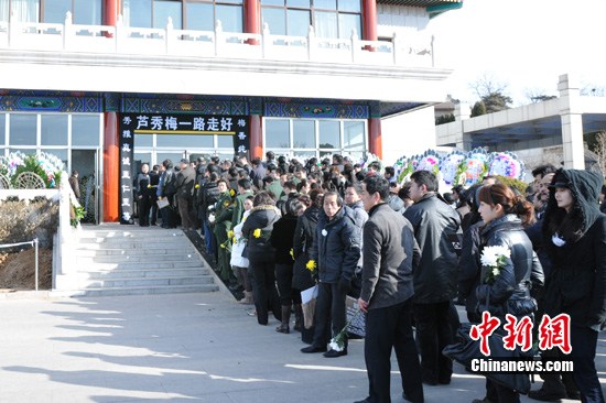 蘆秀梅的遺體告別儀式今早在八寶山舉行殯儀館東禮堂舉行,由中國(guó)歌舞劇院主辦,丈夫趙安細(xì)心打點(diǎn)。