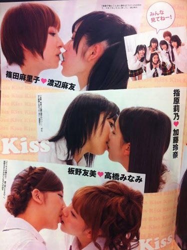 AKB48 日本女子組合AKB48在新作《Heavy Rotation》MV中,所有成員都穿著性感內(nèi)衣,大玩女女曖昧,被CNN質(zhì)疑含有強(qiáng)烈性暗示,而她們最近的新廣告重施老梗,讓隊(duì)友成雙成對(duì)共含糖果,嘴唇甚至已經(jīng)黏在一起,情色作風(fēng)遭日本網(wǎng)友狠批:“色得很廉價(jià)!” 花絮照片在網(wǎng)絡(luò)上流傳后,有人認(rèn)為AKB48太常把女女曖昧當(dāng)做賣點(diǎn),過(guò)激手法讓偶像形象很扭曲。不過(guò)有粉絲則出來(lái)反駁,“制作人秋元康要求這樣拍廣告,AKB也不能拒絕吧?”不過(guò)有網(wǎng)友倒是很幽默以衛(wèi)生觀點(diǎn)出發(fā),提醒她們,“記得‘事前事后’要漱口!” |