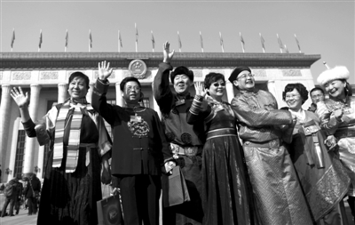 政協(xié)會議閉幕后,政協(xié)委員們走出會場,揮手告別(薛珺 攝)