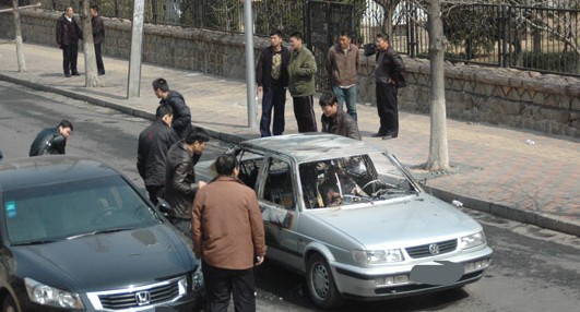 ????目擊:車子爆炸后司機未掙扎自救 市民營救未果