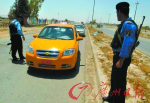 ![]() 基爾庫(kù)克一個(gè)檢查點(diǎn),警察加強(qiáng)戒備