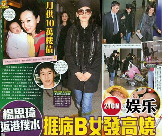 單親媽媽楊思琦美國產(chǎn)女后千呼萬喚歸來,舟車勞頓下,產(chǎn)后剛復元的楊思琦及剛滿月的楊卓穎返港后齊齊發(fā)高燒。身體虛弱亦不惜冒險返港,除因簽證即將到期,最主要是停工大半年坐食山崩,楊思琦獨立養(yǎng)女兒,每月背10萬樓債,負擔極重,顧不得不急返港復出賺錢。清純形象盡喪的楊思琦,行情不跌反漲,據(jù)知產(chǎn)后首個活動酬勞已被搶高四倍,可惜錢未賺,已經(jīng)搞壞女兒的身體。