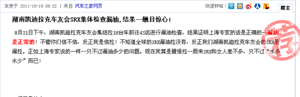 鏈接>>>湖南凱迪拉克車友會SRX集體檢查漏油,結果--觸目驚心!