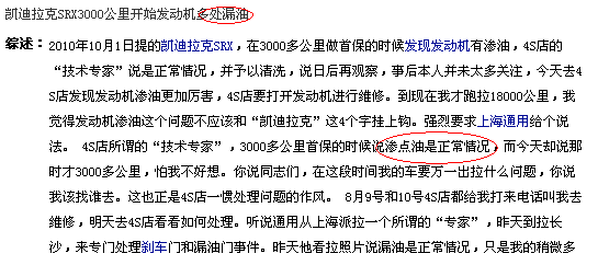 鏈接>>>凱迪拉克SRX3000公里開始發(fā)動機多處漏油