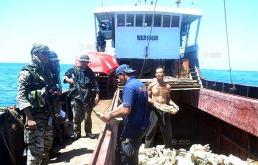 菲律賓海軍在黃巖島持槍抓捕中國漁民