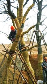 ????園區(qū)內(nèi)的土建工作還在進(jìn)行,園藝部門就同步開始了綠化。大量的樹木已經(jīng)集中在城陽、即墨、膠南、平度的苗圃里,進(jìn)入入園倒計(jì)時(shí)。園藝部工作人員介紹說:“園區(qū)樹木來源有三個(gè)方面,一是苗木生產(chǎn)企業(yè)培育的,二是舊城區(qū)改造、道路拓寬時(shí)無處安放的樹,三是農(nóng)村宅基地建設(shè)時(shí)房前屋后的樹。苗木企業(yè)培育的樹占大多數(shù),園區(qū)本著立足本市苗圃,依次從本市、本省、北方、全國挑選樹種。要是選好了,就記錄下樹木檔案,在樹干上套一個(gè)帶封印的環(huán)標(biāo),以防大樹被調(diào)換。這個(gè)環(huán)標(biāo)就是世園會(huì)發(fā)給大樹的身份證,等到樹木進(jìn)園的時(shí)候,先檢驗(yàn)了環(huán)標(biāo)、檢疫許可證再放行。 ”