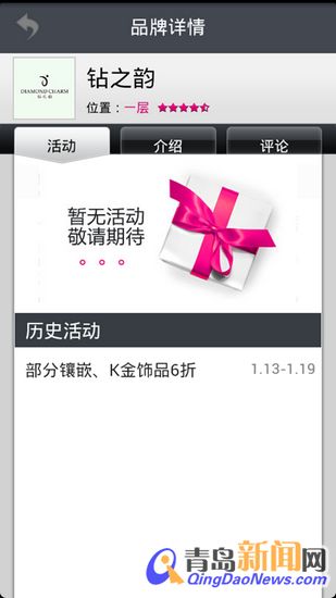 ????本應(yīng)用主要包含麥凱樂青島總店與黃島店的實(shí)時活動信息、品牌介紹與推薦、麥凱樂官方微博等內(nèi)容;其中內(nèi)置樓層平面圖與地圖導(dǎo)航,幫助您更便捷的進(jìn)行購物;精心設(shè)計(jì)的操作界面,精挑細(xì)選的活動信息推送,讓您快樂暢享移動互聯(lián)網(wǎng)時代的便捷生活。