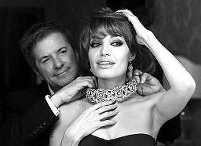 設(shè)計(jì)師羅伯特給朱莉戴上項(xiàng)鏈