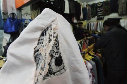 ■突查 執(zhí)法人員查沒(méi)舊洋裝 下午2時(shí)30分,記者聯(lián)系四方工商分局,十幾分鐘后工商執(zhí)法人員分乘三輛車來(lái)到現(xiàn)場(chǎng),當(dāng)身穿制服的工商執(zhí)法人員走到商城門口時(shí),商城內(nèi)突然躁動(dòng)起來(lái)?!肮ど痰娜藖?lái)了,趕緊關(guān)門!”一名中年男子在商城內(nèi)喊了一聲,隨后店主們彼此奔走相告,迅速關(guān)閉店門,并對(duì)散落在地上的舊服裝進(jìn)行緊急清理。由于時(shí)間緊迫,一些來(lái)不及清理衣服的店主直接將自己反鎖在了卷簾門內(nèi),任憑工 執(zhí)法人員緊急采取行動(dòng),一邊制止正在關(guān)門的店主,一邊制止店主們清理服裝。面對(duì)執(zhí)法人員,一名店主始終拒絕承認(rèn)自己銷售的是舊洋裝?!凹热荒阏f(shuō)這些衣服不是舊洋裝,那么把你的進(jìn)貨證明拿出來(lái)吧?!眻?zhí)法人員說(shuō)。店主隨后拿出一堆進(jìn)貨的單據(jù),但始終提供不出證據(jù)證明店內(nèi)的服裝并非舊洋裝。執(zhí)法人員隨即對(duì)店內(nèi)的服裝進(jìn)行清查,在檢查過(guò)程中執(zhí)法人員確認(rèn)該店確實(shí)存在銷售“洋垃圾”的行為,隨即對(duì)店內(nèi)的“洋垃圾”進(jìn)行了查沒(méi)。 正當(dāng)執(zhí)法人員對(duì)商場(chǎng)內(nèi)進(jìn)行檢查時(shí),一對(duì)男女開車?yán)笈b來(lái)商場(chǎng)送貨,原本正要進(jìn)商場(chǎng)送貨的女子獲悉商場(chǎng)內(nèi)正在進(jìn)行執(zhí)法檢查時(shí),急忙拖著大包服裝跑上車,隨即和男子快速驅(qū)車離開。本報(bào)記者 攝影報(bào)道 |