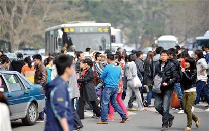 ![]() ![]() ????新聞核心 ????昨天天氣晴好,青島市民紛紛出門踏青賞花,沿海一線的交通近乎癱瘓,受“蝴蝶效應(yīng)”影響,周邊區(qū)域包括膠寧高架路的交通也受阻嚴(yán)重。記者從交警市南大隊(duì)了解到,昨天他們出動(dòng)了70多名警力,全天上路執(zhí)勤疏導(dǎo)交通,并且啟動(dòng)了應(yīng)急預(yù)案,采取將部分路段臨時(shí)設(shè)為單行線等措施,緩解了部分交通壓力,到昨天下午5時(shí)許,各路段交通壓力才開始有所 ????現(xiàn)象 “蝴蝶效應(yīng)”影響交通 ????記者走訪了中山公園周邊文登路、武昌路的5處停車場了解到,所有停車場全部爆滿,八成以上是私家車。到中山公園游玩的市民增多,私家車、外地大巴車等使得公園周邊的交通壓力大增,多名負(fù)責(zé)泊車收費(fèi)的工作人員表示,昨天堵車現(xiàn)象特別嚴(yán)重。 ????中山公園周邊交通開始擁擠后,島城幾條主干道隨之開始擁堵。從昨天上午11時(shí)許,島城東向西的膠寧高架路、江西路、香港中路三條主干道的車流速度明顯緩慢。 ????“這就是‘蝴蝶效應(yīng)’,中山公園周邊交通擁擠,加上路上的很多車輛都是向中山公園周邊靠攏,導(dǎo)致了交通擁堵?!币幻谘影惨宦飞鲜鑼?dǎo)交通的交警分析,從膠寧高架路上就可以看出來,東向西方向過了登州路橋,車行就順暢了。記者采訪了解到,昨天中午12時(shí)許,東向西主干道中膠寧高架路從銀川路上橋口就開始堵車,香港中路從麥島附近就開始堵車,而江西路從福州路到延安三路已經(jīng)“水泄不通”了。 ????分析 三大原因給路添堵 ????市南交警大隊(duì)宣傳科科長于昕分析,昨天高峰時(shí)段來得比較早,從上午9時(shí)30分左右,中山公園路段行車便呈擁堵狀態(tài)?!扒皝碛瓮娴拇蠖际撬郊臆?,由于中山公園附近的停車場已爆滿,個(gè)別私家車便違規(guī)停放在行車道上,這嚴(yán)重影響了車輛正常行車秩序,這是造成交通擁堵的重要原因?!庇陉空f。“行人亂穿馬路也是造成車行不順的主要原因。”交警市南大隊(duì)秩序科科長吳玉勇告訴記者,特別是中山公園正門,很多行人不走地下過街通道,直接橫穿馬路,造成信號(hào)燈通行時(shí)間縮短。交警市南大隊(duì)昨天出動(dòng)了70多名民警,全天在中山公園周邊路段執(zhí)勤疏導(dǎo)交通,但很多市民不聽交警勸阻,執(zhí)意橫穿馬路。 ????于昕還提到,昨天恰逢周末,結(jié)婚的市民也比較多,而婚車扎堆上路也對(duì)交通造成一定壓力?!盎檐囆羞M(jìn)速度較慢,而且還是排成一行,這也在一定程度上造成交通擁堵?!庇陉勘硎?,文登路是個(gè)交通匯集地段,佛濤路、香港西路及東海路等3個(gè)方向匯集過來的車輛都要經(jīng)過文登路,而昨天來中山公園賞花的市民又特別多,這必定會(huì)造成交通擁堵。 ????記者發(fā)現(xiàn),雖然旅游旺季還未來到,但外地的一些旅游大巴已經(jīng)來到,他們違規(guī)停放隨意上下客也造成交通擁堵。 ????記者體驗(yàn) ????昨天上午,早報(bào)記者兵分四路,分別從浮山后、嶗山區(qū)、臺(tái)東和遼陽西路前往八大關(guān),體驗(yàn)了“走到哪里都是堵”。 ????半小時(shí)的路走了兩小時(shí) ????昨天上午11時(shí)許,記者從勁松三路駕車前往八大關(guān),此時(shí)銀川西路東向西車流量很密集,雖然時(shí)走時(shí)停,但行進(jìn)還算順暢。不過當(dāng)開車走上膠寧高架路大潤發(fā)超市橋上路段后,車流量陡然增多,車輛幾乎是一步一挪,行進(jìn)困難。 ????由于膠寧高架路車流量太大,當(dāng)快到二輕新村路段時(shí),記者駕車走外側(cè)車道,準(zhǔn)備下橋繞行徐州路,前往江西路。不料膠寧高架路西向東外側(cè)車道車輛也異常擁堵,記者耗費(fèi)20多分鐘才開到徐州路上。記者沿江西路一路向西行駛,一直到延安三路路口都算順暢。但行至植物園位置時(shí),前來游玩的私家車和旅游車聚集在此,一度造成交通擁堵。 ????最堵的路段是在佛濤路上,車輛行駛一段后便會(huì)有很長時(shí)間的等待。當(dāng)行至佛濤路和香港西路交界處時(shí),公交車和私家車混雜在一起?!岸际侵猩焦珗@門前路段堵車惹的禍,那邊堵點(diǎn)打不開,我們?cè)谶@也走不動(dòng)?!彼郊臆囍鲃⑾壬魫灥卣f,他要去太平路參加婚宴,此時(shí)已經(jīng)遲到半個(gè)多小時(shí)。 ????從勁松三路到八大關(guān)風(fēng)景區(qū),原本半小時(shí)的車程,而直到昨天下午1時(shí)許,記者才“挪”到八大關(guān)風(fēng)景區(qū)內(nèi)的榮成路上。 ????9公里路程等候費(fèi)30元 ????9公里的路程用了1個(gè)半小時(shí),嚴(yán)重路堵讓出租車的車速始終開開停停,原本只需要20元左右的車費(fèi)漲到了50多元。昨天,記者從南京路與敦化路交界處打車到八大關(guān)禮堂,從上午11點(diǎn)10分打上車一直到中午12點(diǎn)35分才到達(dá),55分多鐘的等候,終于讓等候費(fèi)超過了里程費(fèi)。 ????昨天上午11點(diǎn)10分,記者打上出租車?!拔覄倧目焖俾烽_過來,西向東方向已經(jīng)堵成一鍋粥了?!庇浾吒嬖V司機(jī)目的地是八大關(guān)后,出租車司機(jī)建議不要走膠寧高架路,改走海邊或佛濤路,記者選擇了佛濤路。從出租車開到江西路開始,車速就降了下來,馬路上成群結(jié)隊(duì)的車輛大都在慢慢等待。車開到湛山附近時(shí),已是11點(diǎn)30分,但到了湛山后,才知道什么是堵,兩排車道