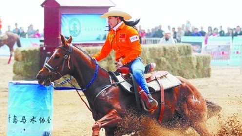 ![]() 激烈的馬術(shù)繞桶激得現(xiàn)場沙子飛揚。 (記者 陸金星)