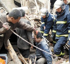 ????昨日青島市遇到近幾年春季罕見的大風天氣。一些隨意搭建的簡易房和疏于管理的廣告牌未能抗住大風的檢驗,坍塌和墜落帶來多起意外傷人事故。這些事故發(fā)生時,市民和路人紛紛伸出援手,警察、消防和醫(yī)護人員能及時趕到現(xiàn)場施救。 ????急!警民徒手扒出倆人 一簡易廠房被大風刮塌傷者均骨折仍在救治 ????昨天上午8時50分,遼陽東路孫家下莊里一棟雙層簡易廠房坍塌,鐵皮、屋梁、瓦礫將兩名正在干活 ????事發(fā):風刮倒工棚埋倆工人 ????在發(fā)生事故的鐵藝加工廠門前,記者透過鐵門看見,三個磚石結(jié)構(gòu)的廠房圍起來的一片地帶里,一片占地面積約為50平方米的工棚成了一堆兩米多高的廢墟,橫梁、瓦礫、鐵皮、木板、鐵架混堆在一起。廠房北側(cè)堆放著一些鐵架子、鐵箱等鐵藝制品,旁邊散落著一些高壓氣瓶。 “當時呼啦啦就倒了,埋住了兩個人。 ”一位知情者告訴記者,警車、消防車和急救車趕到現(xiàn)場,民警和消防隊員們手持各種器械沖進廠房救人。 ????救援:警民徒手扒出他們 ????“第一批來救人的都是附近干活的人,大家都趕過來救人了! ”目擊者王師傅告訴記者,坍塌的工棚埋住的兩人之中一名被埋在了廢墟里,另一名腰部以下被埋住了。工人們拿來鐵鍬和鋤頭撬開了砸在后者身上的一根房梁,徒手扒開上面的磚塊等物,救出了這名被壓住雙腿的工人。此時,民警和消防隊員們趕到。由于不知道被埋工人的具體位置,他們無法使用器械,只能一面徒手挖掘,一面呼叫被埋者的姓名,以確認其位置。約10分鐘后,一位戰(zhàn)士發(fā)現(xiàn)了另一名被埋者的一只胳膊,大家將附近磚塊房梁挪開,將被埋者移出送上急救車。 ????傷情:一個肋骨折一個傷腿骨 ????記者隨后趕到青醫(yī)附院東院區(qū)找到了兩名傷者。劉師傅告訴記者,當時他蹲在坍塌的樓房外側(cè)干活,突然“呼啦啦”一陣巨響傳來,他還沒來得及回頭,一根房梁一下砸到了他的腿上,緊接著就是一陣從天而降的灰塵?!氨惶С鰜淼臅r候我才知道是房子塌了?!眲煾嫡f。 ????記者在急救室看見,另一名傷者焦師傅的身上蓋著一床白色被子,從頭到腳都站滿了灰塵,鼻子上已經(jīng)連接上了氧氣管。一位陪護的工友告訴記者,他的肋骨可能已經(jīng)斷裂,消防戰(zhàn)士將他刨出時,他身上還壓著幾根房梁。截至記者離開時,兩位傷者還在接受治療,但幸運的是,都沒有生命危險。 記者 劉卓毅 ????驚!買了藥出門 落下門頭牌 一家三口昨去藥店買藥遇意外在眾生大藥房門前受傷 ????昨日上午8時許,臺東六路眾生大藥房一個門頭被狂風吹落砸中一家三口,三人受傷后被立刻送往醫(yī)院接受治療。 ????記者接線索后趕到現(xiàn)場看到,出事的是一家眾生大藥房,被吹落的廣告牌被工作人員挪到門口一側(cè),這個廣告門頭寬約兩米,高約1米,記者用手抬了抬這個門頭感覺非常沉。 ????記者隨后趕到海慈醫(yī)院急診室,見到了受傷的三人。傷勢最重的董女士坐在輪椅上由親友推著去做檢查,她頭頂左側(cè)纏著厚厚的紗布,傷口縫了20針。受傷的男孩左側(cè)顴骨和左耳根部腫了。孩子的父親王先生傷勢最輕,在忙前忙后為兩人辦理醫(yī)療手續(xù)。王先生告訴記者,自己和妻子一起去給兒子買藥,沒想到遭遇“飛來橫禍”。 (記者 張勃) ????險!正在路上走 天降廣告牌 眾路人齊力抬開墜落物將過路老漢和女子救出 ????晚報訊 昨日11時許,在威海路與四平路交叉口,懸掛在深港廣場北側(cè)一塊兩米多高的廣告牌突然被風吹落,砸中路過的一名老漢和一名年輕女子。路人上前掀開廣告牌將滿頭是血的兩名傷者扶出,并撥打了110和120求助。急救人員趕到后立刻將兩名傷者送往海慈醫(yī)院,所幸經(jīng)檢查兩人并沒有生命危險。 ????附近一家零食店的老板告訴記者,事情發(fā)生在11時許,當時路上行人較多,掛在深港廣場大門北側(cè)的一塊兩米多高的廣告牌突然被風刮掉,飄出3米后拍倒了兩名行人。 ????目擊者胡先生告訴記者,事發(fā)后,有三名男子立刻抬開了廣告牌,被砸中的老人側(cè)臥在地上不能動彈,滿頭是血,有路人當即掏出紙巾為他擦拭額頭上的血跡;被砸女子爬起來后一直在叫“嚇人、嚇人”。傷人的廣告牌已經(jīng)被移走。 ????記者在海慈醫(yī)院見到了65歲的傷者王老漢,他頭部縫了20多針,已纏上紗布。老漢顱內(nèi)是否有傷,還需等CT掃描結(jié)果。 25歲的受傷女子有一些輕微擦傷,經(jīng)治療已離院回家。 (記者 劉卓毅) |