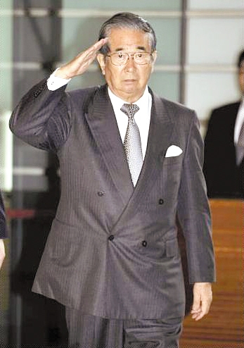 27日,石原慎太郎向媒體記者“敬禮”。目前,他正為“購買”釣魚島不遺余力