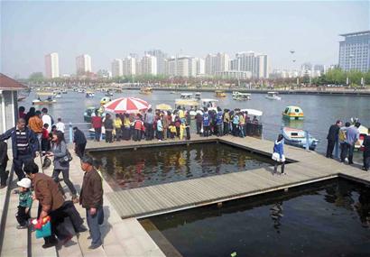 昨日記者來到第一海水浴場看到,這里是一片歡樂的海洋,大人、孩子們快樂地在沙灘上嬉戲,有的還在沙灘上搭起了帳篷,享受新鮮的海風(fēng),傾聽海浪的聲音。據(jù)統(tǒng)計,昨日第一海水浴場接待游客5萬余人,是今年入春以來接待游客人數(shù)最多的一天。