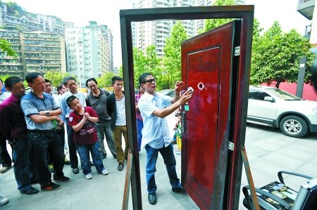 “傳統(tǒng)的彈子鎖用錫箔紙加上輔助開鎖工具,幾秒鐘就能打開?!绷_永正話音剛落,有人便疑惑地問(wèn):“真有這么厲害?”羅永正當(dāng)場(chǎng)掏出錫箔紙,放入輔助工具,插進(jìn)門孔后,左右一用力,不到5秒鐘便將一扇反鎖的房門打開,現(xiàn)場(chǎng)市民看得目瞪口呆。“如何分別防盜鎖的好壞?”羅永正現(xiàn)場(chǎng)傳授說(shuō),將鑰匙二分之一插入鎖里,然后輕微用力向一個(gè)方向扭住,同時(shí)往鎖芯里推。如果能順利推進(jìn)鎖芯,這種鎖就是性能比較好的防盜鎖。要是鑰匙推不進(jìn)去或者阻力很大,那么這個(gè)鎖多是傳統(tǒng)彈子鎖,防盜性能不高,可以被小偷用很多種方法打開。
