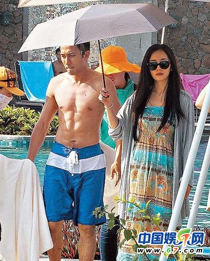 劉愷威拍戲水戰(zhàn)比基尼嫩模 楊冪臨場(chǎng)監(jiān)督幫男友撐傘
