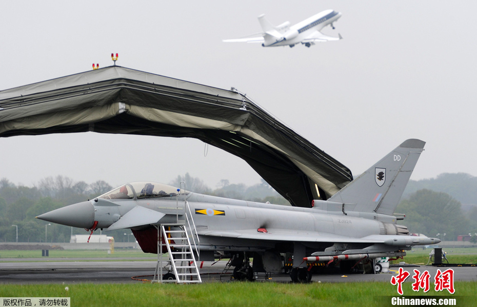當(dāng)?shù)貢r間2012年5月2日,英國倫敦諾斯霍特皇家空軍基地,四架臺風(fēng)戰(zhàn)斗機(jī)抵達(dá)倫敦諾斯霍特皇家空軍基地,參加為期8天的奧運(yùn)安保演習(xí)。演習(xí)從5月2日至10日,屆時人們很可能在演習(xí)高峰時段注意到高可見度的飛機(jī)空中活動。