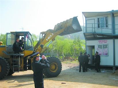 曾經(jīng)有人在文昌路公交站旁建起地基,被李滄城管執(zhí)法人員及時制止,不想剛過五一小長假,此處一下子多出一個二層“小別墅”。5月2日上午,執(zhí)法人員依法對此處移動板房實施強拆。 5月2日上午9時,李滄城管執(zhí)法局湘潭路中隊執(zhí)法人員來到文昌路364總站,在該公交站旁,記者看到了一個雙層的板房建筑,雖然是板房,但做工非常精致,堪稱一個“小別墅”。共計200多平方米,門窗齊全,一樓一間為居住,一間為辦公場所,辦公大廳落地玻璃門很上檔次,二樓二間房每間的窗戶都有防盜網(wǎng)。 “這個地方我們之前來制止過,那時候還沒有這個板房,現(xiàn)在這個板房就是一夜之間出現(xiàn)的?!苯?jīng)查,這處違法建筑是當(dāng)事人張某,趁五一放假的夜間將整體早已做好的“二層樓”用吊車移到此處,想利用周邊場地停車方便建一個自動洗車場,這處二層“別墅”用于辦公和工人住宿。早在幾天前湘潭路中隊的執(zhí)法人員在此路段巡查時就發(fā)現(xiàn)有人在這壘磚,一看就是準備在此搭建臨時性板房那種地基,執(zhí)法人員當(dāng)場就對違法行為進行了拆除,責(zé)令當(dāng)事人改正把場地清理干凈,沒想到張某仍報著僥幸心理,覺得在五一節(jié)假期而且還是晚上把已建好的“別墅”吊過來,就不會有什么事,結(jié)果還是被拆除清走。 據(jù)介紹,隨著文昌路的建成通車,在文昌路沿線逐步拆除了一些歷史遺留的違法建筑達一萬多平方米,對于新增在建的違法建筑發(fā)現(xiàn)一處將拆除一處。(宋新華 于佳立) |