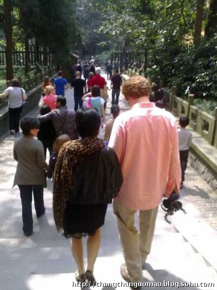 其下附上的兩張照片中可見袁莉與林博文新婚燕爾,感情甚篤,盡管是在游人如織的寺廟前面,袁莉依然緊緊傍著林文博,攜手前行。