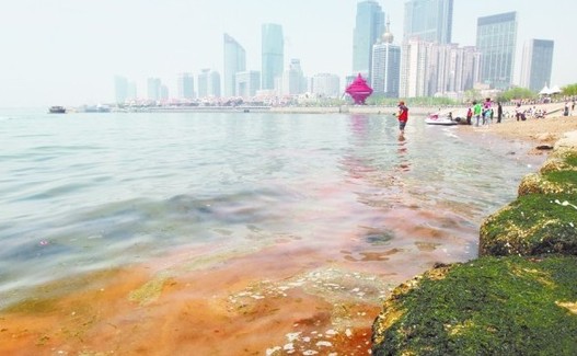 浮山灣岸邊海水變紅 初步斷定非赤潮(圖)