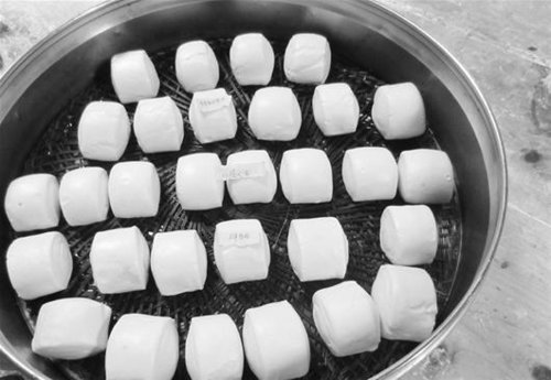 ????因為大小不同,不好評定。記者和這位朋友最后決定再試一次,用添加劑做出了和老面饅頭一樣大小的饅頭,最后得出結(jié)論:用一斤面粉,加大劑量投放“泡打粉”和“饅頭改良劑”后,外觀同樣大小的饅頭,數(shù)量要比真正的老面饅頭多一倍。