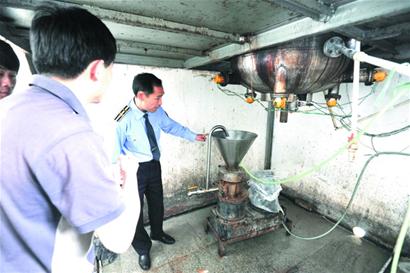 ????“這個(gè)環(huán)境太差勁了,這樣的條件肯定不達(dá)標(biāo)。 ”剛走進(jìn)生產(chǎn)車間,執(zhí)法人員便發(fā)出“感慨”,生產(chǎn)食品添加劑應(yīng)該是在密閉消毒過(guò)的室內(nèi),但這個(gè)車間不僅大門洞開,而且車間的窗戶全部打開來(lái)用于散熱,辦公區(qū)在生產(chǎn)車間里面,而生產(chǎn)用的設(shè)備也有不少的污垢,在包裝車間內(nèi),兩名女工赤手拿著小鏟子在給添加劑裝袋,而所謂的進(jìn)門消毒間就是一個(gè)簡(jiǎn)易洗手盆。負(fù)責(zé)人張先生則一個(gè)勁地表示,自己已經(jīng)停產(chǎn)很長(zhǎng)時(shí)間了,“那你這些工人在干嘛,這不是在生產(chǎn)么。 ”執(zhí)法人員反問(wèn)道,他頓時(shí)啞口無(wú)言。