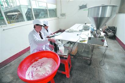 ????生產(chǎn) 女工用小鏟裝袋子