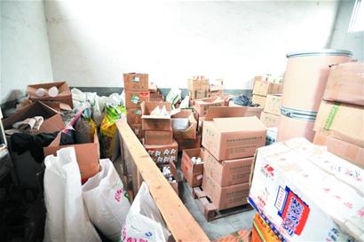 ????這時(shí),記者和執(zhí)法人員發(fā)現(xiàn),車間旁一個(gè)大門緊鎖,當(dāng)要求工人開門時(shí),幾名工作人員有點(diǎn)慌張,“這個(gè)舊倉(cāng)庫(kù),里面就是裝著些鐵皮,沒有別的東西?!痹谟浾吆蛨?zhí)法人員的一再要求下,對(duì)方終于打開大門。然而,出現(xiàn)在記者眼前的是琳瑯滿目的添加劑,五十多平方米的房間堆得人都進(jìn)不去。“這些都是退貨,別人不要的。 ”工作人員連忙解釋,記者跳進(jìn)倉(cāng)庫(kù)內(nèi),很快就找到了“肉寶王”,生產(chǎn)日期是今年3月18日。 “我們就生產(chǎn)了這么點(diǎn),還沒賣。 ”工作人員再次改口。